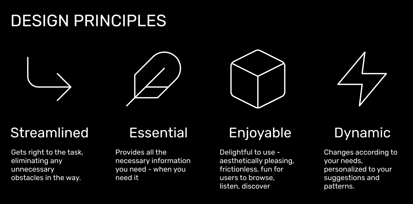 The first step was to redesign and simplify the playlist creation process. I developed design principles to follow, attached below.